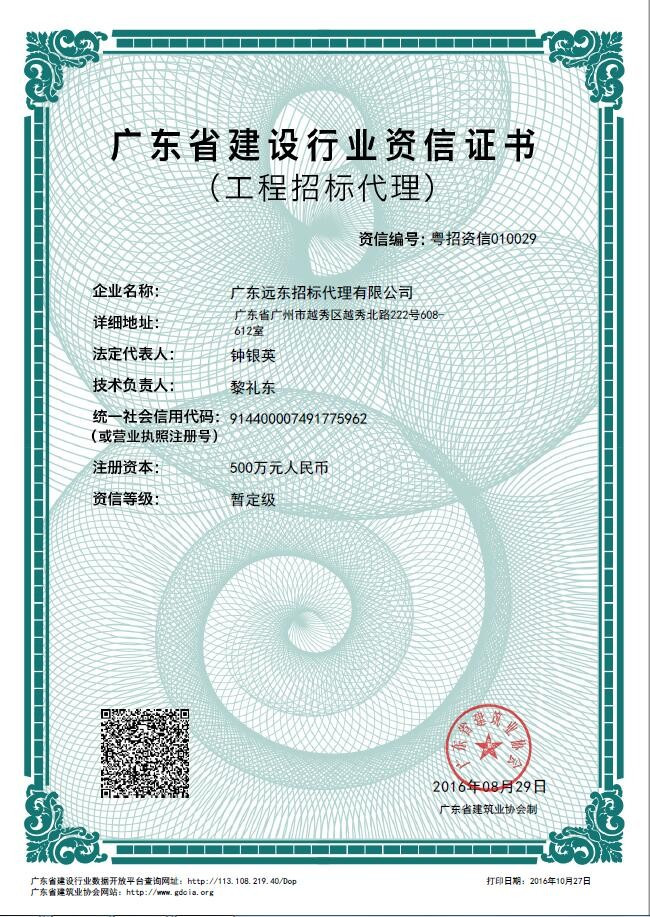 廣東省建設(shè)行業(yè)資信證書暫定級