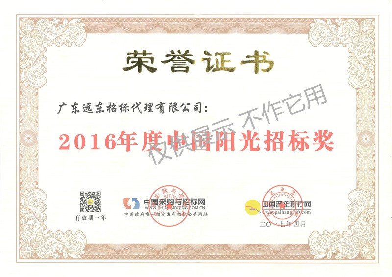 2016年度中國(guó)陽(yáng)光招標(biāo)獎(jiǎng)